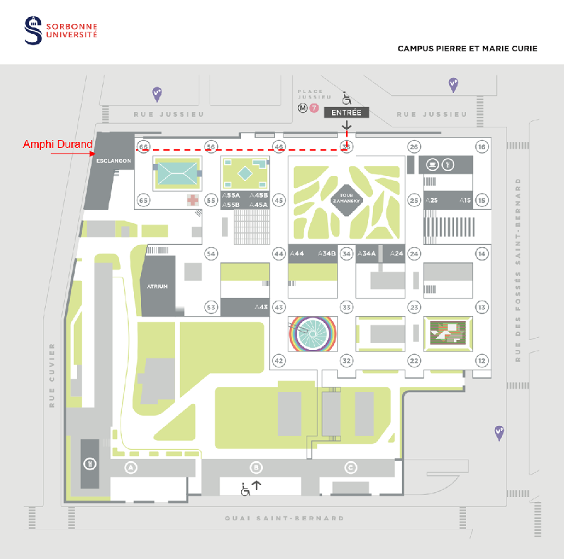- Le stationnement à proximité du campus est limité, mais des parkings publics sont disponibles à Place Jussieu et le long du Quai Saint-Bernard.